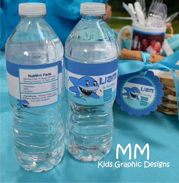 Shark Theme Party Water Bottle Labels Shark Water Bottle Labels Kids Birthday Party Decoration ...