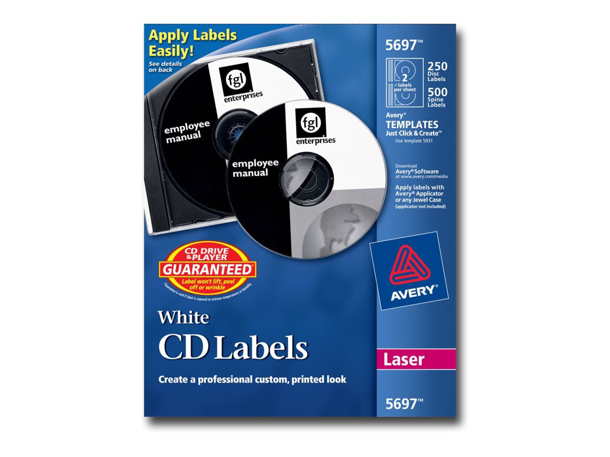 Avery® Matte Laser CD/DVD Labels, White, 250/Pack (AVE5697) | Staples Avery matte white laser CD/DVD paper labels come in packs of 250 for convenience. Avery matte white laser CD/DVD paper labels organize your digital records and vital documents on a digital disc format. Avery guarantees that these labels do not lift, peel off or wrinkle, which protects your optical drive machines from damage.