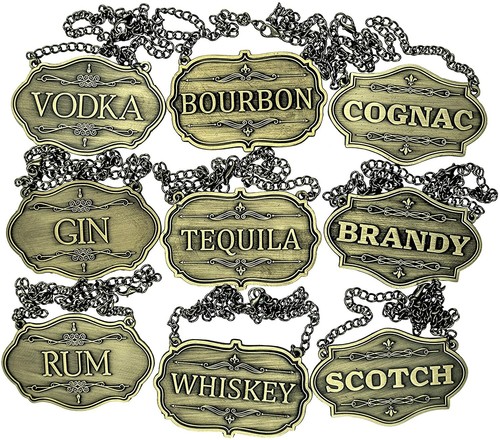 Heritage Pewter Liquor Decanter Labels – Set of 9 Liquor Tags: Scotch, Bourbon, Whiskey, Vodka, Gin, Rum, Cognac, Tequila, Brandy | Adjustable Chain | ...