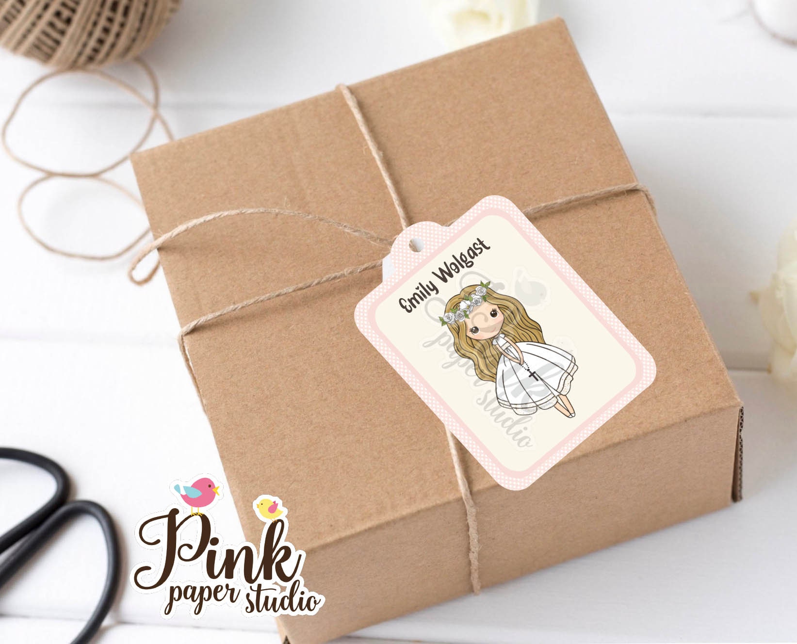 Girls Pink Floral First Holy Communion Sticker Labels or Favor Tags, First Holy Communion Favor Tags, First Holy Communion Supplies, Girls Pink Floral ...