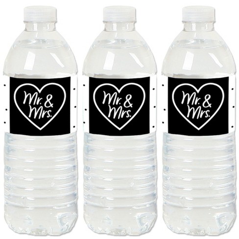 Big Dot of Happiness Mr. and Mrs. - Black and White Wedding or Bridal Shower Water Bottle Sticker Labels - Set of 20